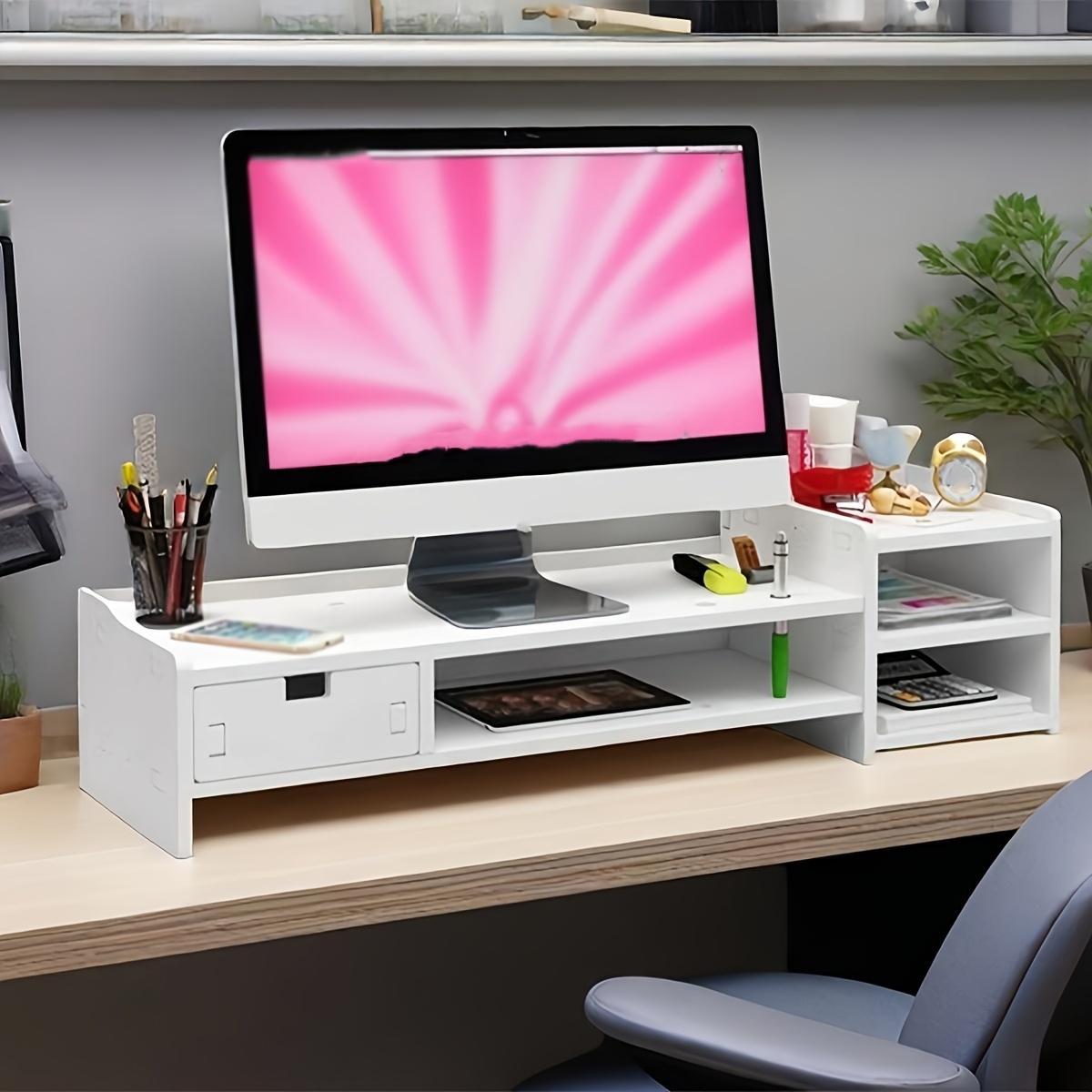 TEMU 1개 DIY 화이트 사무용 모니터 스탠드, 서랍 수납함, 키보드 트레이, 데스크탑 컴퓨터 받침대, 탁상용 펜꽂이, 문구류 정리함, 탁상용 선반 포함