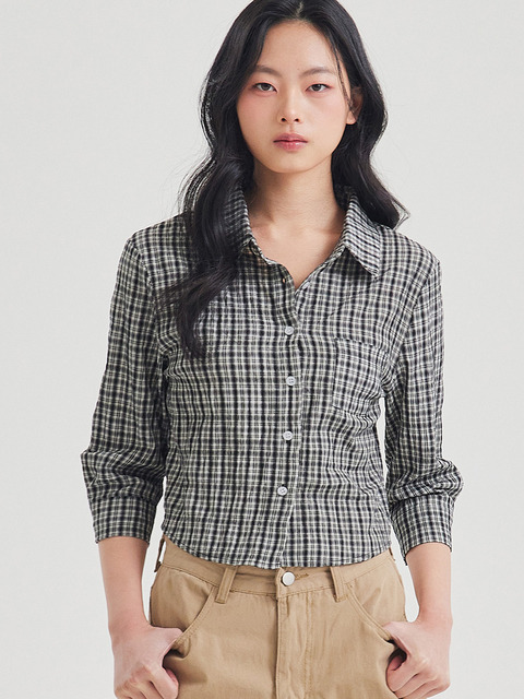 [탑걸] 미니멀 깅엄 체크 셔츠_T611TP109