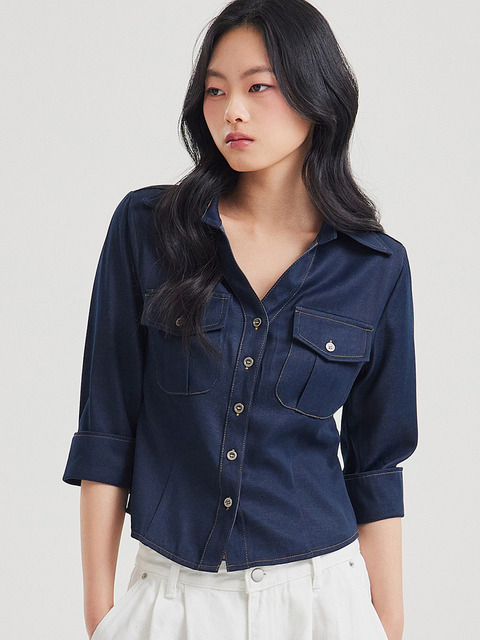 [탑걸] 커프스 스냅 포켓 크롭 셔츠_T611TP110