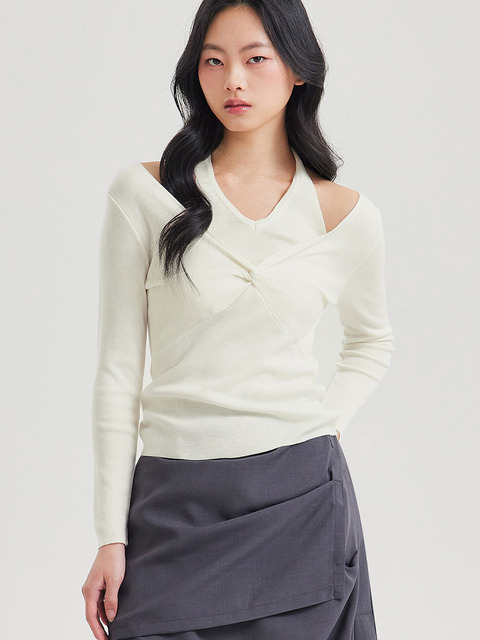 [탑걸] 레이어드 홀터넥 트위스트 니트_T611TP102