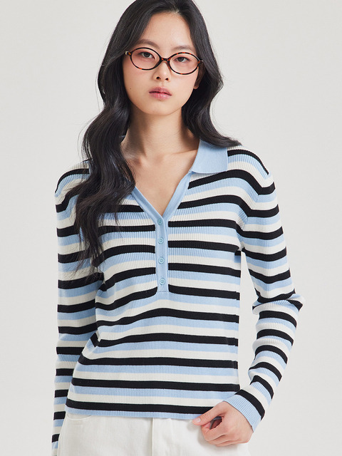 [탑걸] 컬러 스트라이프 카라 니트_T611TP104