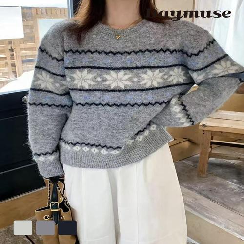 [모어오브]라타타 니트 라운드넥 긴팔 스웨터 탑