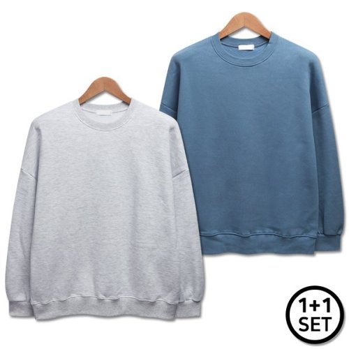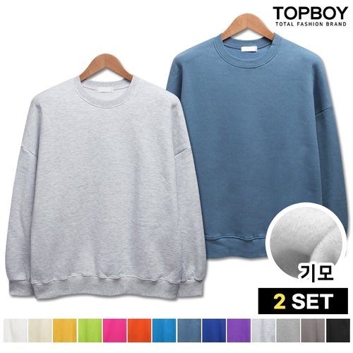 [탑보이] 2장세트 남녀공용 오버핏 기모 맨투맨 (NTBS_906)
