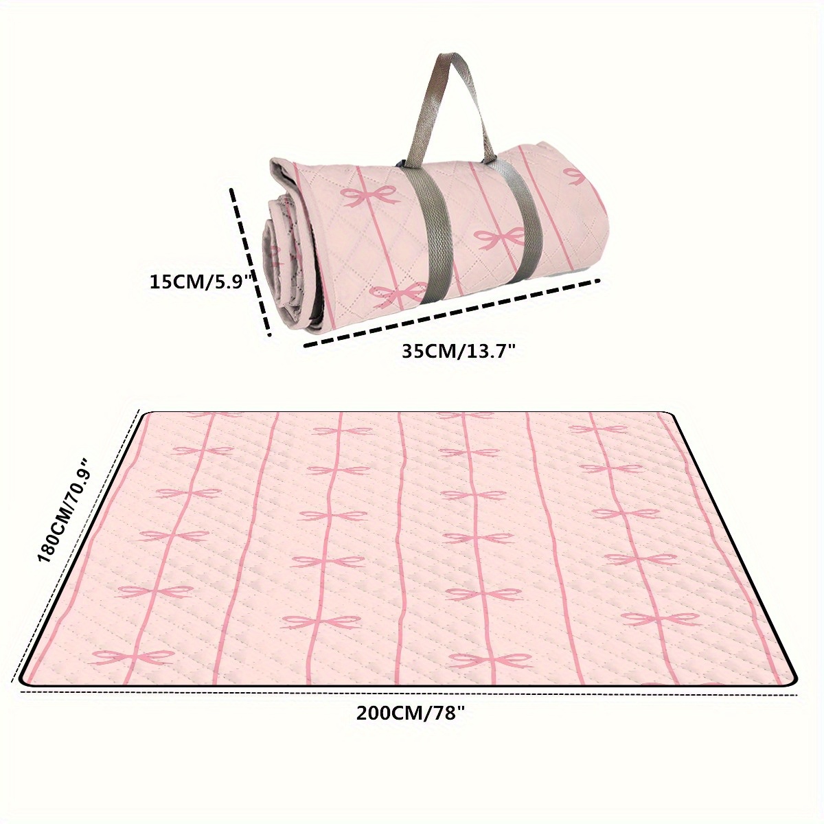 TEMU 1개 가벼운 휴대용 아웃도어 캠핑 담요 & 비치 매트 - 리본과 줄무늬 디자인, 내구성 있는 폴리에스터 사계절 피크닉 매트 (캠핑, 바비큐, 하이킹, 여행용)