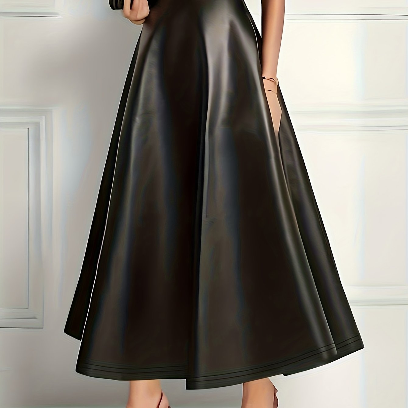 TEMU 여성용 우아한 하이웨이스트 조절 가능한 스트랩 A라인 스커트 - 단색 세탁기 사용 가능 드레스, 사계절 캐주얼부터 드레시웨어까지 다용도, 웨딩 게스트, 오피스 & 세미포멀 복장