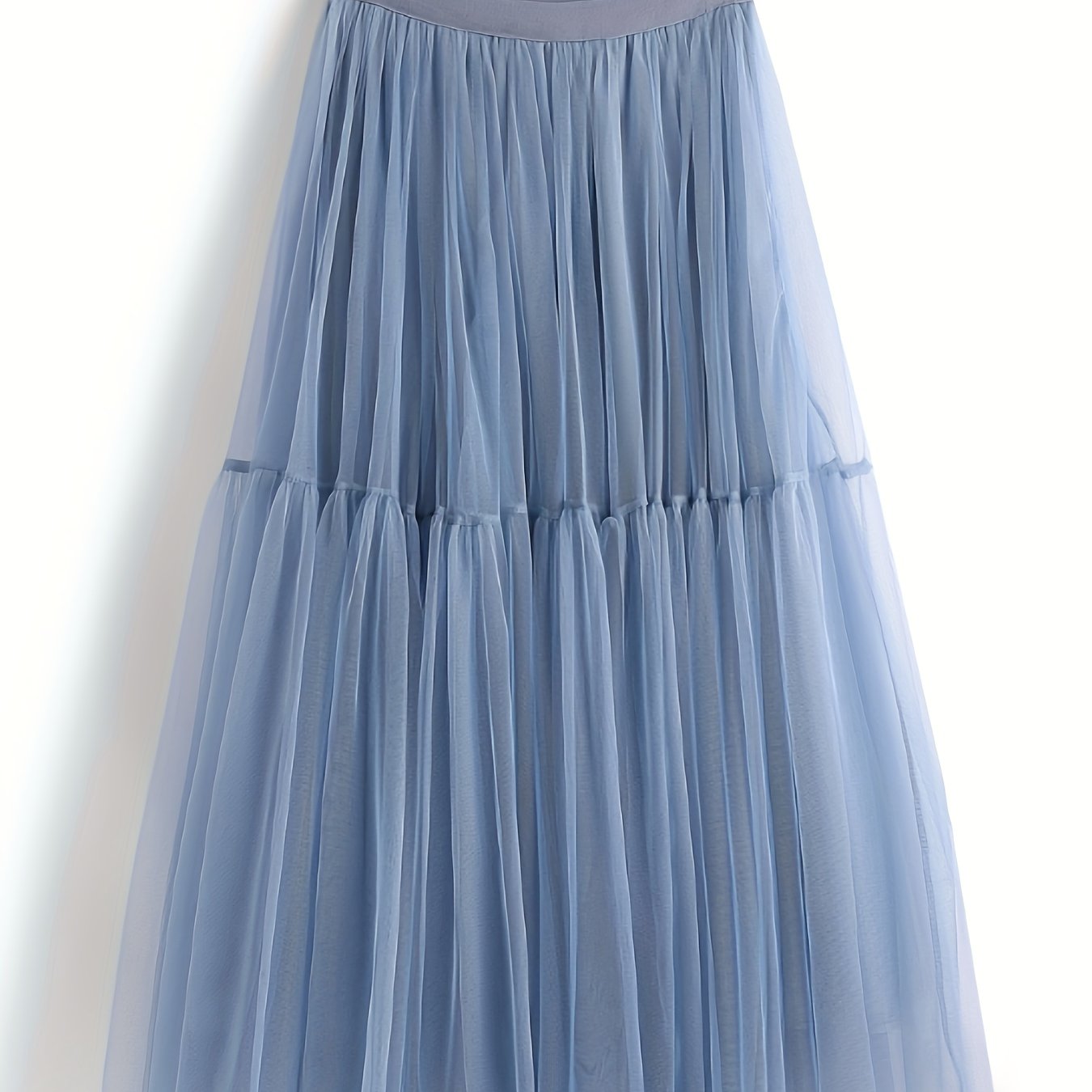 TEMU 탄성 허리 튤 레이어드 스커트, 봄과 여름을 위한 세련된 A라인 튜투 스커트, 여성 의류