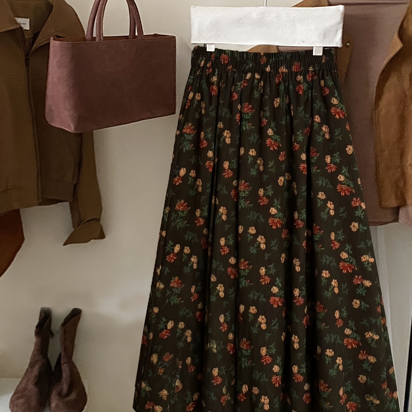 TEMU 가을, 겨울용 빈티지 프렌치 스타일의 고급 프린트 스커트. 유연한 A라인 실루엣과 레이어드 튤 헴이 특징이며, 포멀 및 세미 포멀 이브닝 이벤트, 결혼식, 파티에 적합합니다. 모든 계절에 착용 가능합니다.