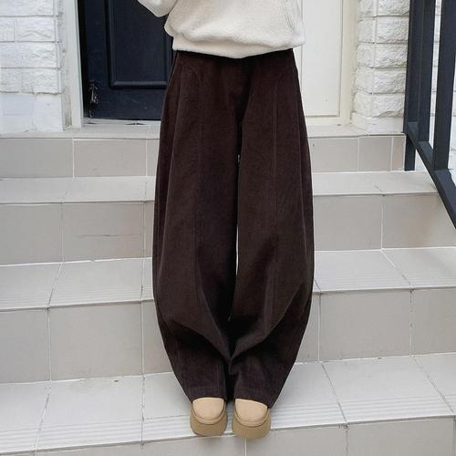 [시크블랙]치리피 골덴 핀턱 커브드 와이드 밴딩 팬츠