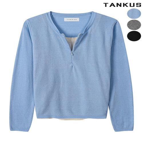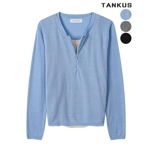 [탱커스]여성 레이어드 반집업 셔링 니트