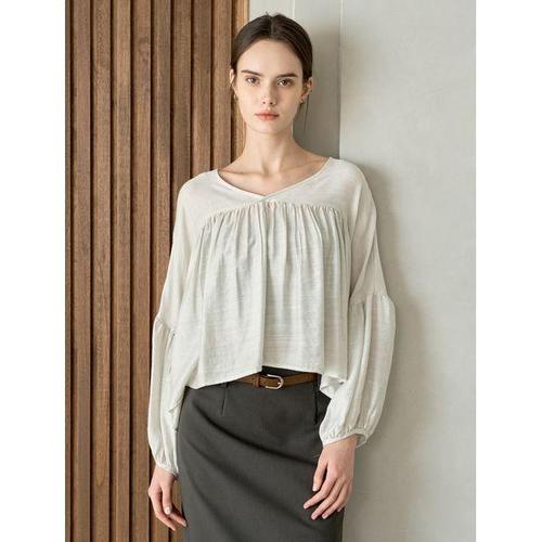[탱커스]V넥 셔링 플레어 오버핏 긴팔 블라우스 (TY1BL005L0)