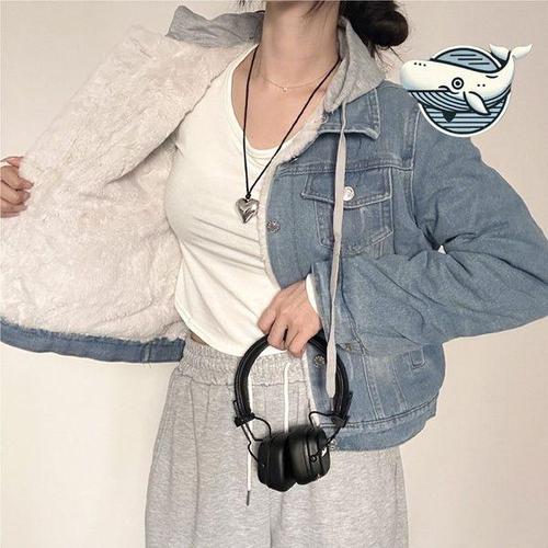 [셀러허브_여성트랜드패션]ONM 여성 방한 부드러운 털 안감 크롭 스타일 데님 자켓