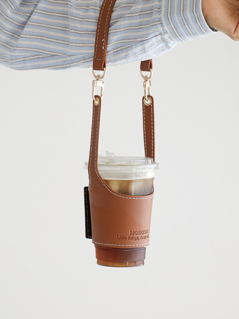 레더 텀블러 스트랩 캐리어 (4colors) 테이크아웃 드링크백 컵 홀더 파우치 크로스백