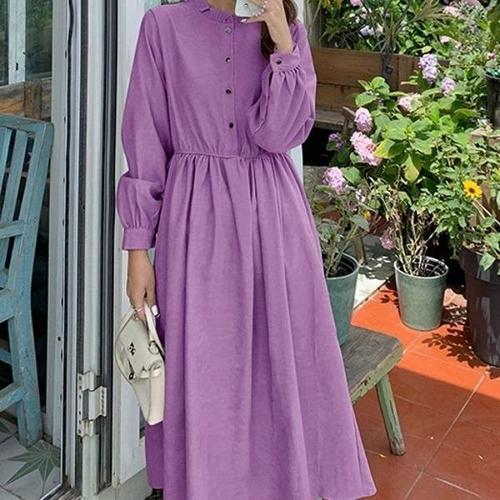 [엄지척]프릴 코듀로이 롱기장 넥프릴 A라인 허리밴딩_19913448_667501
