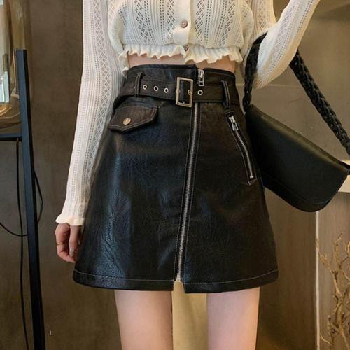 여성 레더스커트 앞지퍼 포인트 매력적인 A라인 치마 WE3CBC3
