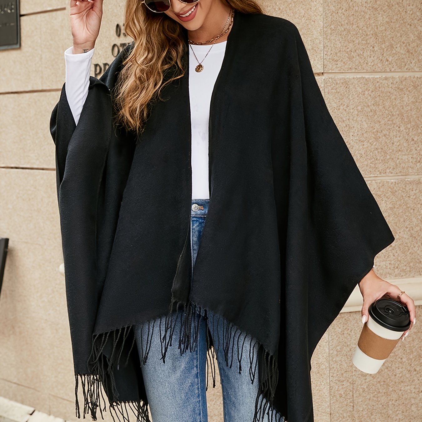 TEMU 플러스 사이즈, 여성용 오픈 프론트 숄 케이프 솔리드 컬러 프린지 플러스 사이즈 커브 심플 패션 이브닝 데이트 데일리 봄 가을 겨울