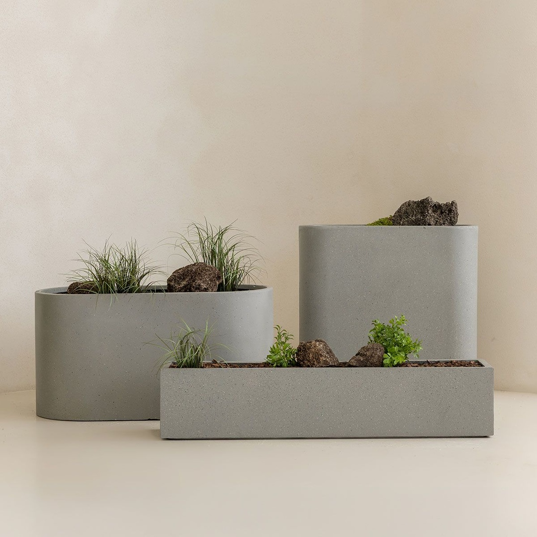 배수구가 있는 콘크리트 화분 - 실내 현관/테라스용 둥근 높은