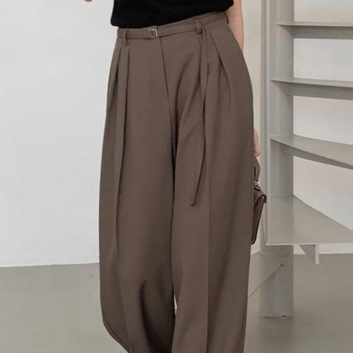 [옷자락] 여성 가을 직장룩 슬림벨트 핀턱 와이드핏 신축성 슬랙스