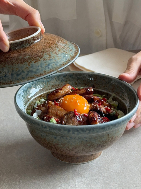 일본식 호시 돈부리 공기 도자기 밥뚜껑 텐동 덮밥 뚜껑 그릇세트 국수 라면