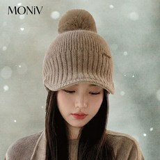 모니브 여성 겨울 골프모자 토끼털 방한 니트 비니, 1개, 브라운