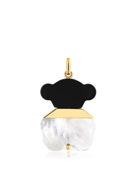 [토스] [TOUS] 실버 18K 골드 버메일 스위트 돌즈 자개 오닉스 16mm 펜던트 1004437400