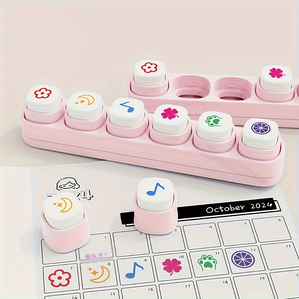 TEMU 6개 1개 카드 스탬프 6종 세트 - 스크랩북 및 다이어리 스티커 스탬프, 6가지 버튼 패턴 플래너 스탬프, 밀봉 인쇄 및 페인팅 도구, 음표 스탬프, 스탬프, 라이프스타일 스탬프, 선물 컬렉션|카드스티커