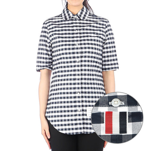 [톰브라운]25SS 여성 RWB 보우 타이 블루종 반팔 셔츠 (FTU371G 03113 100 25S)