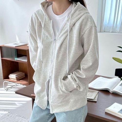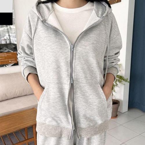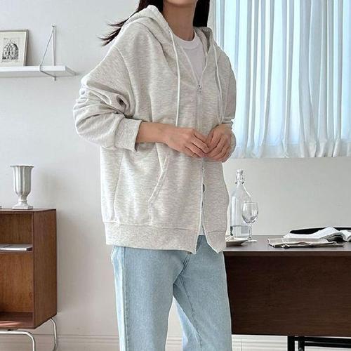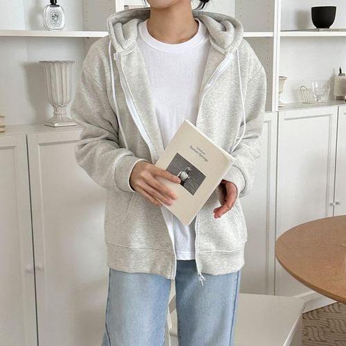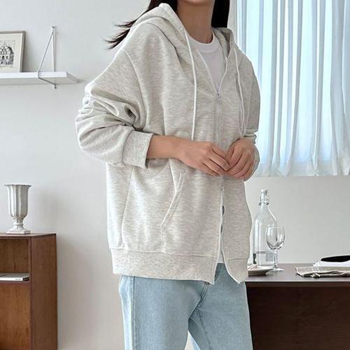 [에이치플러스몰]여자 기모 투웨이 지퍼 후드 집업 자켓 무지 캐주얼