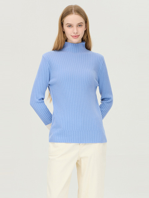 MALBON GOLF 모크넥 투톤 립 니트 SKY BLUE (WOMAN)