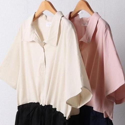 [모노무드]LMO 여성용 귀여운 칼라슬리브 투톤 핏 모던 여친룩 탑
