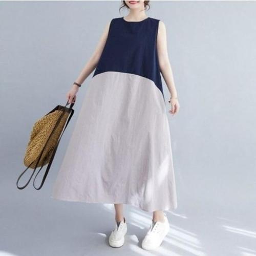 [엄지척]루즈핏 여자면원피스 원피스 롱 여자원피스 여성 투톤_19913416_667501