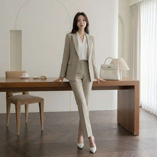 베이직 여성 바지정장세트 테일러드 자켓 스판 슬랙스 투피스 수트셋업