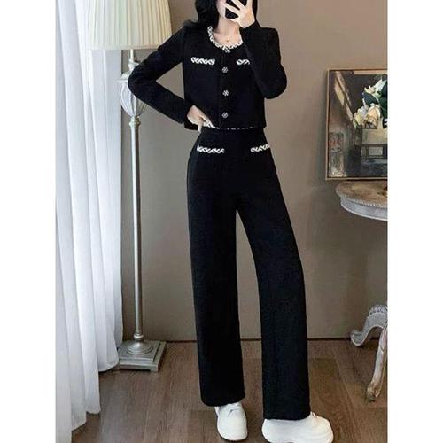 [옷자락]여성 블랙 크롭 자켓 와이드 투피스 세트
