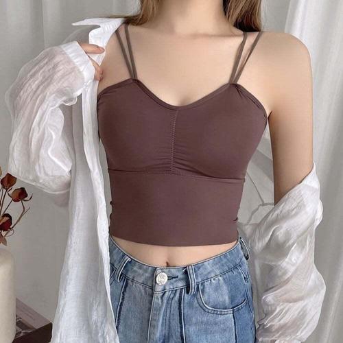 여성 섹시 크롭탑 튜브탑 패드 브라 민소매 스트리트웨어 캐미 섹시 란제리 심리스 크롭탑 스포츠 탱크탑 M-XL