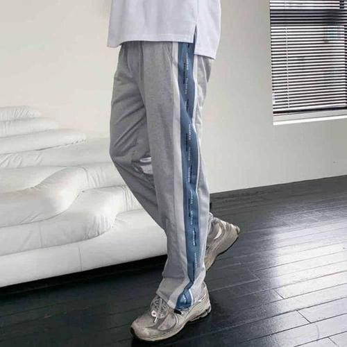 [옷자락]여자 남자 커플츄리닝 배색 트랙팬츠 밴딩 와이드 바지