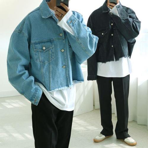[맨즈북]박시 컷팅 남자 숏 청자켓 크롭 데님 트러커 가오리 오버핏