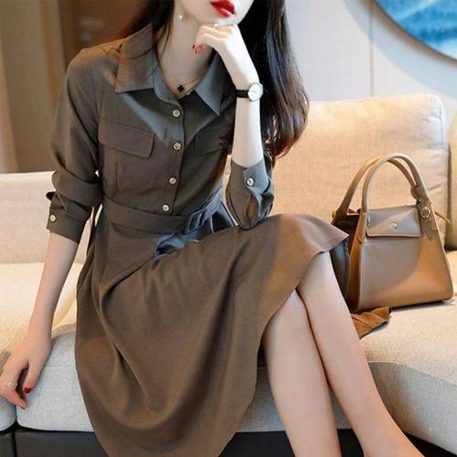 트렌치 무드 벨트 셔츠 롱원피스 JSD-1004065