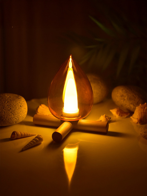 [올쉐이프] 오렌지글라스 티어드롭 모닥불 우드 LED 무드등 조명