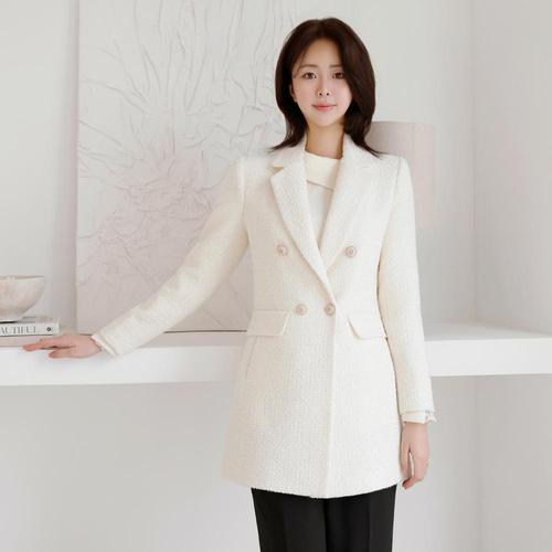 [드리다]여성 울 트위드 더블 빅사이즈 롱 자켓 하객 모임 오피스룩 40-50대 미시 엄마옷