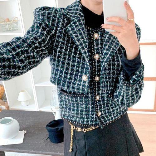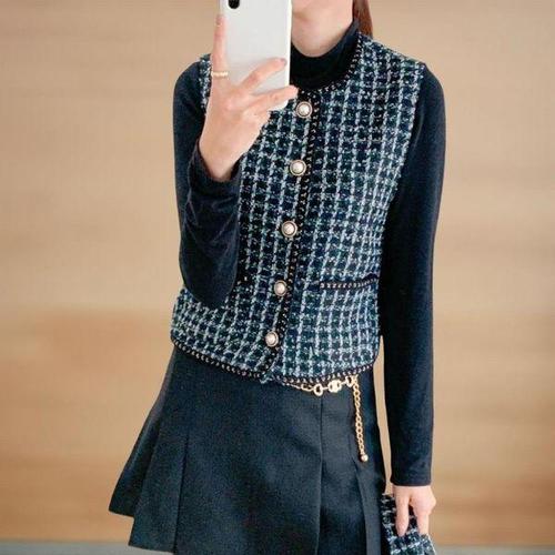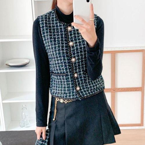 [신상오픈런]여성 크롭 트위드 자켓 진주 버튼 조끼 투피스 세트