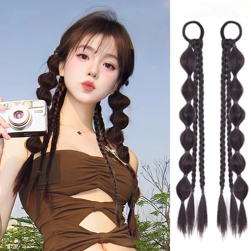버블 브레이드 포니테일 합성 가발 연장 헤어 액세서리 여성용 헤어 타이 브레이드 포니테일 복싱 트위스트 헤어 피스