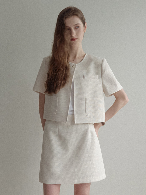 [르나브] 원 트위드 크롭 자켓 (아이보리)