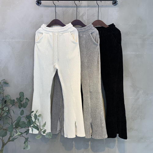 씨샵인더룸 / 레듀 벨루아 골지 밴딩 앞트임 부츠컷 팬츠 3color