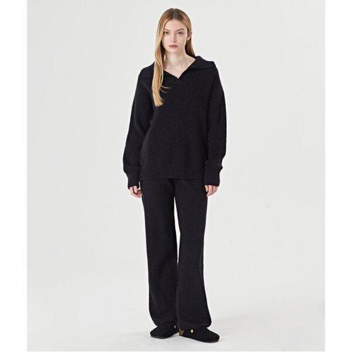 [GGPX]트임 카라 니트 밴딩 롱 팬츠 셋업 (GODOW028D)