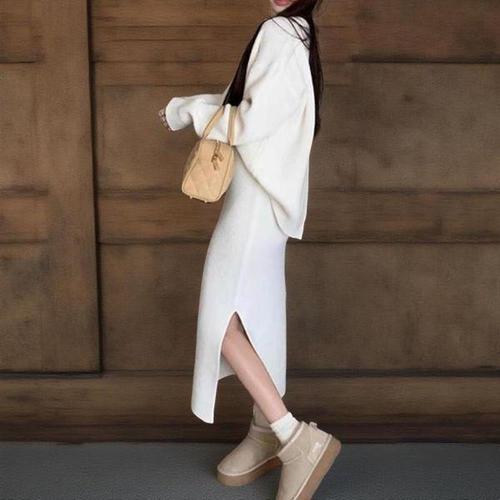 [옷자락]여자 오버핏 니트 일자 트임 골지 니트 롱스커트 세트
