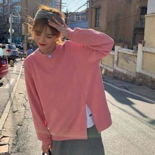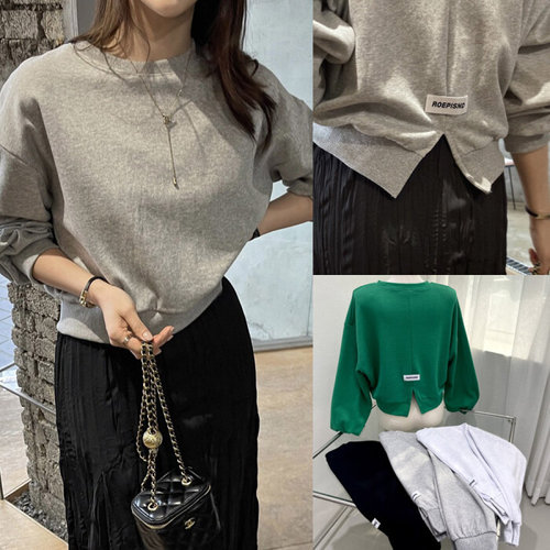 [셀럽하우스]루즈핏 PLLJ4823 옆 트임 긴팔 티셔츠 크롭 맨투맨 여성티