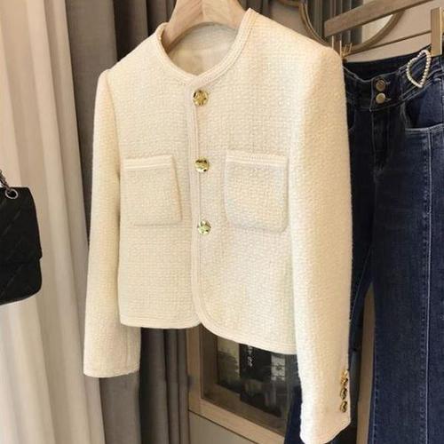 2026 트위드 코리아 고품질 숏 트위드 재킷 여성 한국 의류 싱글 브레스티드 레이디 블레이저 올매치 캐주얼 코트 탑