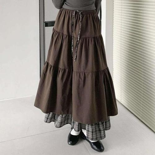 [다잇템][다잇템] 여자 후레아 고무줄 티어드 롱 격자 핀턱 코디 스커트_23517804_588872