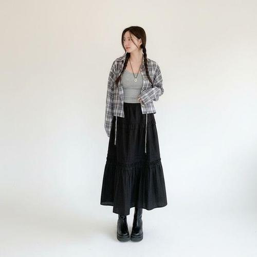 라라온 밴딩 플레어 캉캉 티어드 롱 스커트 26TSP3636