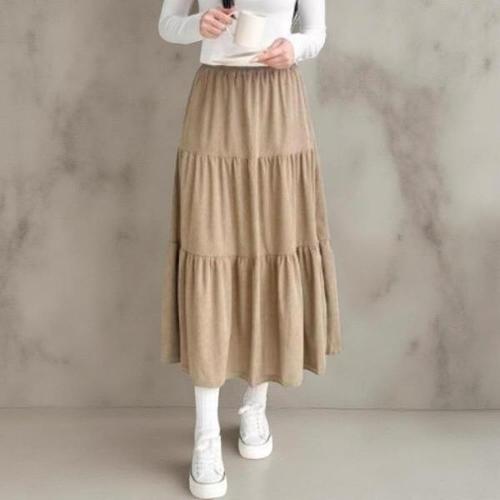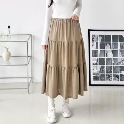 [다잇템]여성용 색상 티어드 민무늬 고무줄 롱 스커트