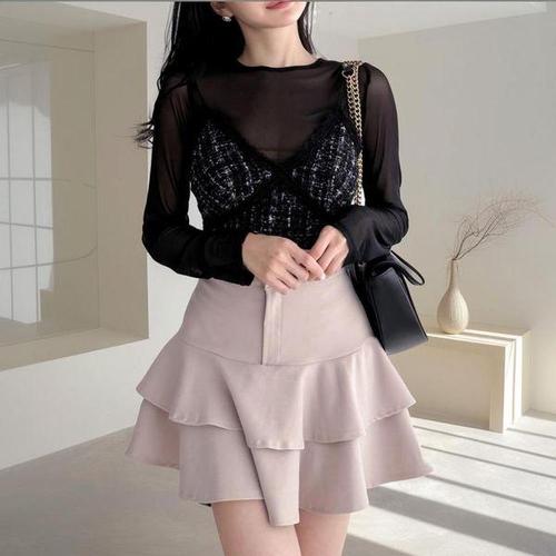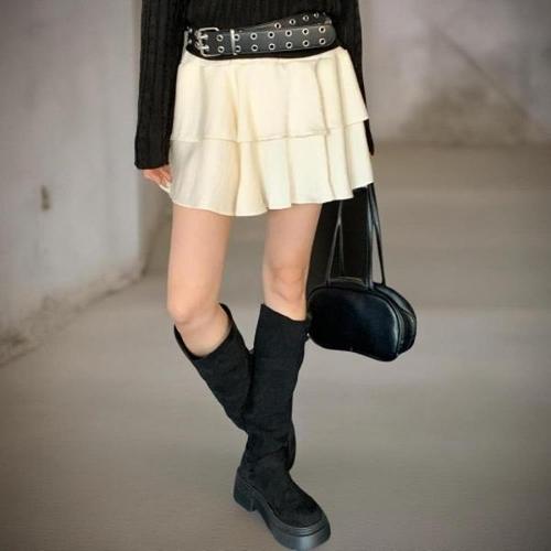 [다잇템]여자 더블 민무늬 티어드 귀여운 쁘띠 스커트